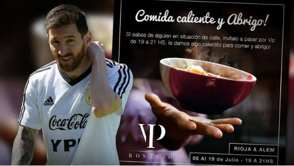 早在去年7月,阿根廷全境遭遇寒潮,梅西就开放了自己在罗萨里奥的餐厅,为那些需要的人每人提供一份热食、一杯咖啡、一杯苏打水,甚至是为一些特定的人提供一杯酒。