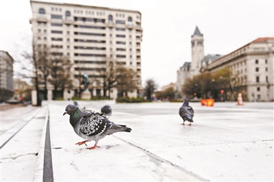 3月23日,美國首都華盛頓,鴿子在無人的廣場上“散步”。美國約翰斯·霍普金斯大學當日发布最新數據顯示,美國新冠肺炎確診病例超過4萬例 攝影/新華社記者 劉傑