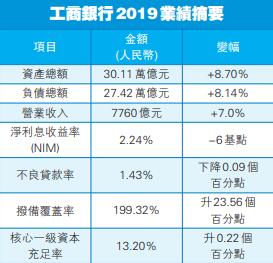 工行昨日公布2019年全年業績,純利3122.24億元(約3410.12億港元),同比增長4.9%。不良貸款率較上年末下降0.09個百分點,至1.43%;撥備覆蓋率提升23.56個百分點,至199.32%;資本充足率提升1.38個百分點,至16.77%。其2019年度股息為每10股2.628元(含稅,約2.92港元),預計將派息936.64億元(約1041.51億港元)。過去一年,工行普惠小微業務實現了量和質的雙豐收。2019年末,工行普惠型小微企業貸款比上年末增加1614億元,增幅52%,客戶增加15.3萬戶。