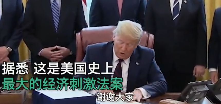 当地时间27日,美国总统特朗普签署2万亿美元经济刺激计划法案,用于应对新冠肺炎疫情对美国经济的冲击,这也是美国史上最大的经济刺激法案。特朗普签字之前还开玩笑称:我从来没签过“万亿”开头的。