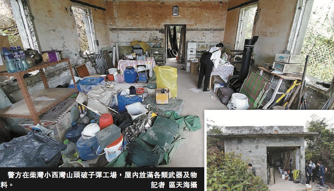 警方在小西湾山头荒废石屋捣破子弹生产工场。前日港岛冲锋队行山队接获线报,掩至龙跃径山上截查3名男子,检获800多粒弹壳、200多粒弹头和怀疑火药原材料,及可制造爆炸品的化学物品。警方稍后在小西湾再拘捕1名男子,检获1柄曲尺手枪。警方初步相信子弹是供应未来暴乱现场使用,形容情况令人担心。警方正追查原材料来源,不排除再有人被捕。