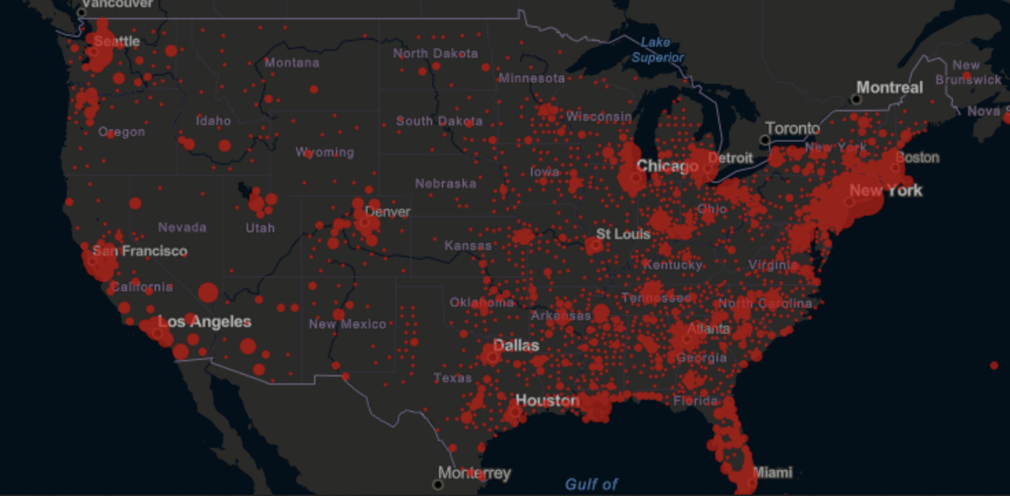 据约翰斯·霍普金斯大学数据,截至美东时间27日17:13,美国新冠肺炎确诊病例为100717例,死亡1544例,日新增病例已经接近2万人。