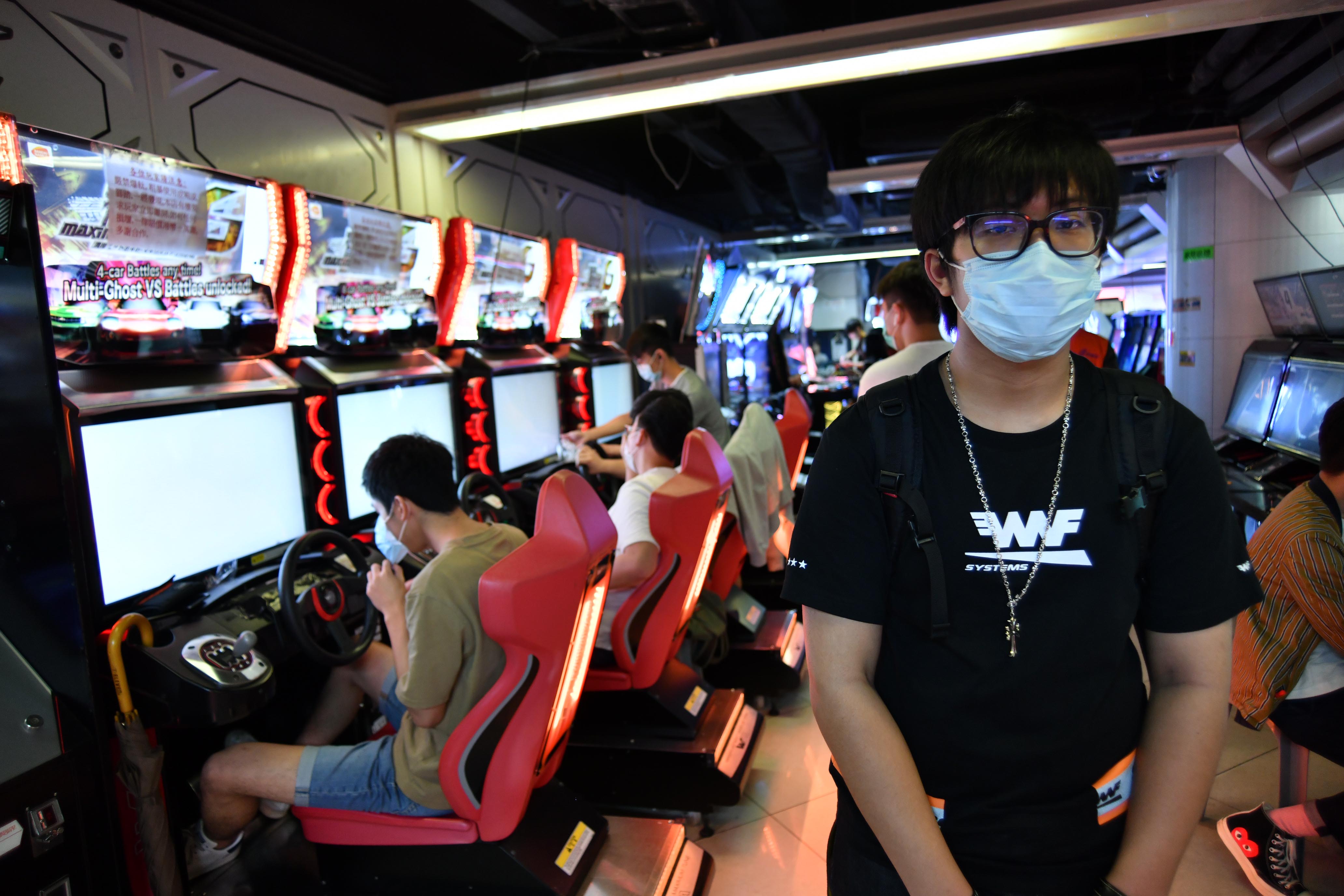 「SmartGame」遊戲機中心昨天有八成滿,全都是年輕人,都有戴口罩。其中,中六周姓男生和2名同學一齊出來溫習,知道機舖要暫停,隨即趕緊來玩1小時:「怕之後很久冇得玩。」
