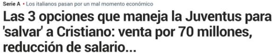 《信使报》称之前的降薪对于尤文图斯来说不足以度过难关,C罗的高薪对于俱乐部来说可能会是一个问题。