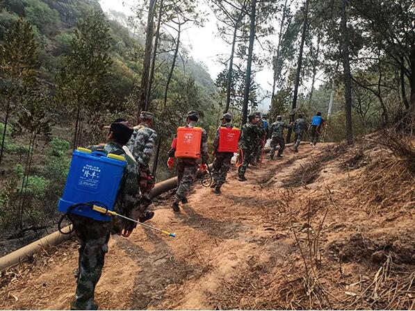 总攻队伍向火场行进,展开灭火。本文图片 西昌市融媒体中心