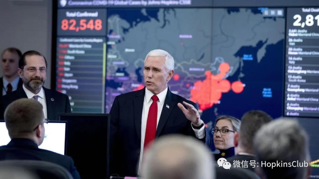 美国副总统彭斯使用霍普金斯疫情地图(来源:WH/WEB)