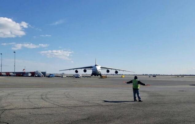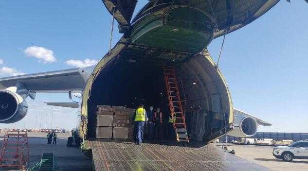 【香港商报网讯】当地时间4月1日,一架满载医疗物资的俄罗斯安-124军用运输机降落在美国纽约肯尼迪国际机场,为美国送来防控新冠疫情医疗援助物资。