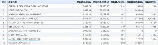 根據機構提交的數據,截至2019年底,瑞幸咖啡受到機構投資者的青睞,去年第四季度,機構增持達到2.89億股,新進機構持有股份1.45億股。截止去年底,瑞幸咖啡持倉最大的前十大機構股東是資本研究全球投資者(Capital Research Global Investors),持有6032萬股,其次是孤松資本、Alkeon資本公司、美國銀行、Melvin資本管理公司、瑞銀、Darsana資本、瑞信、Janus Henderson和Sylebra資本。(文章综合自21财经、新浪等)
