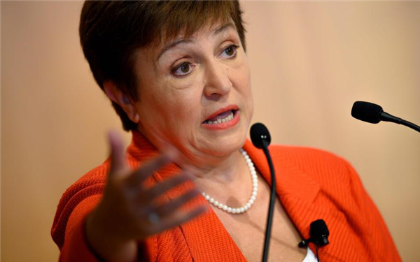 国际货币基金组织格奥尔基耶娃说,冠病疫情导致全球经济陷入停顿,所引发的经济衰退将远比2008年金融海啸来得严重。(法新社)