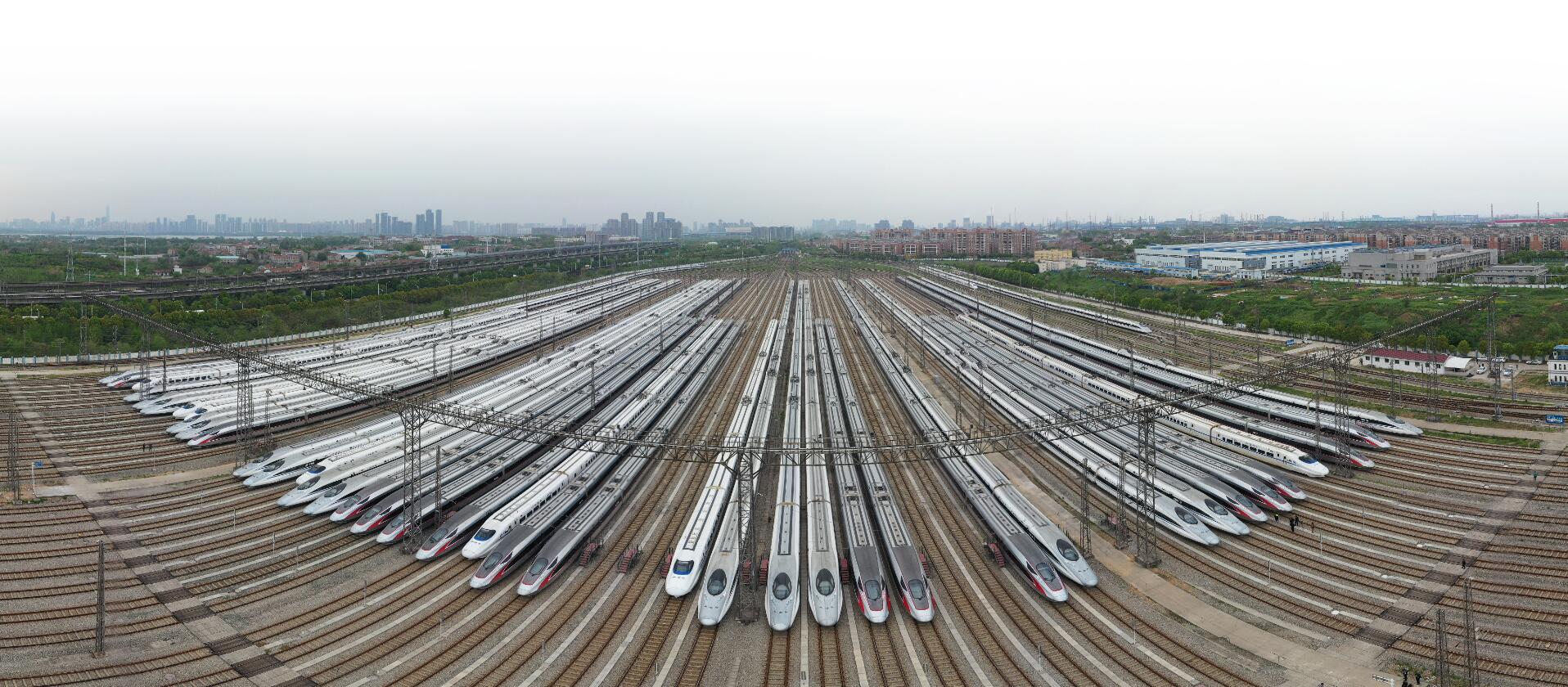 鐵路客運發車也做好準備,漢口火車站進站口處,紅外測溫設備已準備就位,下圖為高鐵動車組昨日整裝待發。