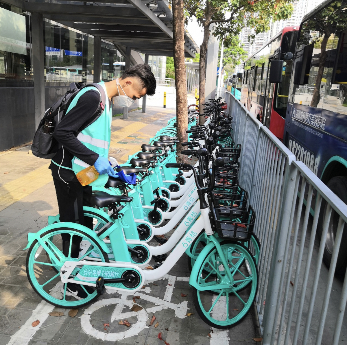 新冠肺炎疫情爆发以来,青桔在深圳市交通局和南山区城市管理和综合执法局的指导下,扎实做好自身防疫工作,运维人员每天进行三次体温检测,对所有试点车辆消毒,并及时向主管部门汇报相关情况。