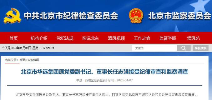 北京市华远集团原党委副书记、董事长任志强接受纪律审查和监察调查