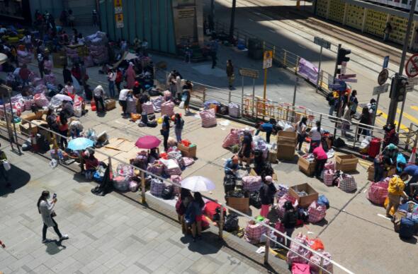 周末仍有不少外傭聚集。圖:中通社