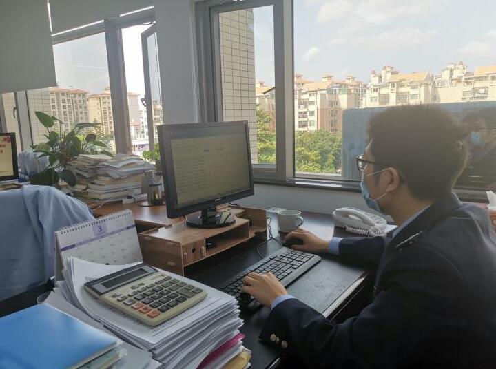 圖為中山市稅務局稅務人員對企業提交的留抵退稅電子材料進行後台審核