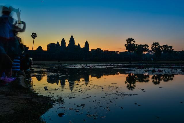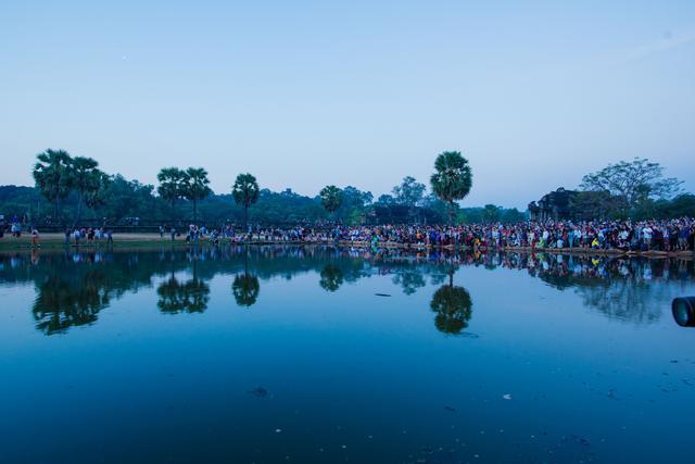 游客们会在早上5点左右就守候在小吴哥寺的荷花池边,等着欣赏绝美的日出,换言之,大家必须4点左右就要从市中心出发了。等候是一件浪漫的事情,天地无声,黑色有了变化,天空渐渐地被朝阳染成了温暖的颜色,是世间最美丽的渐变。最后,太阳终于占据了天空,一片橙黄色让人不由得激动满怀,大家一起喝彩。或许这就是自然带给人的感悟,百态众生,每个人都收获了不同的心境。