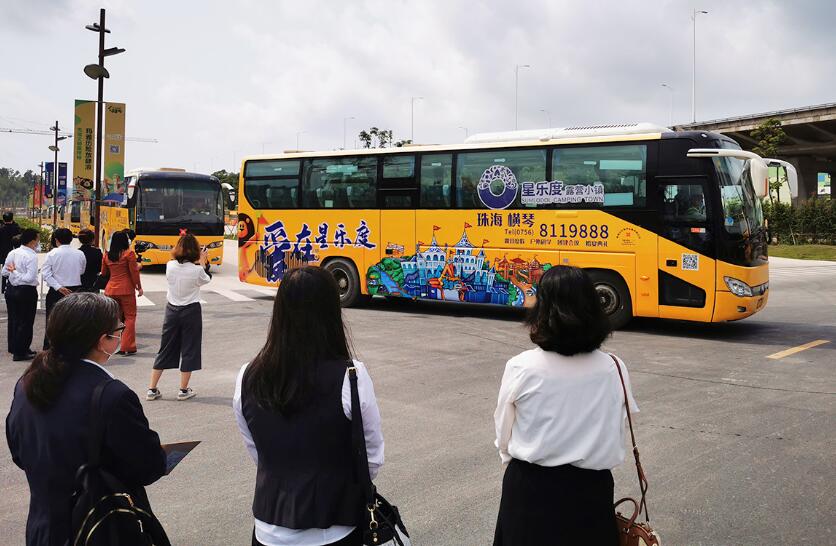 17日上午,珠海橫琴星樂度?露營小鎮舉行「橫琴文旅產業復工復產發車儀式」。隨着現場嘉賓鳴響代表着橫琴文旅產業復蘇號角的汽笛,30輛全新噴塗的「橫琴國際休閑旅遊島」車身的巴士從橫琴星樂度?露營小鎮緩緩駛出,被按下「暫停鍵」的橫琴文旅行業駛入復工復產「快車道」,橫琴文旅產業也正式開啟全面復蘇的新態勢。