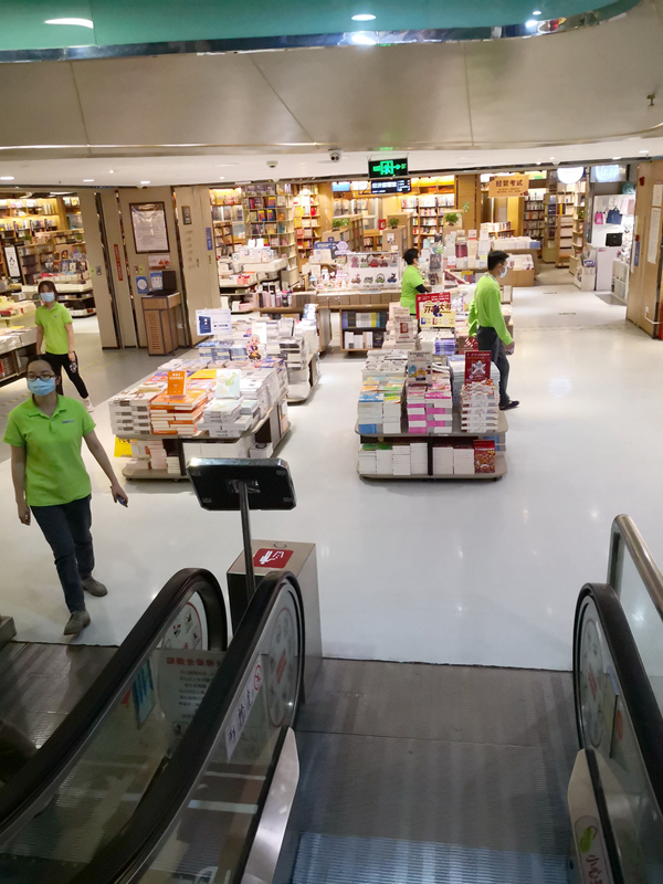 當問到書城的經營壓力時,該位店員表示:「應該說疫情對書城的經營確實造成較大壓力,每日的營業額可能只有以前的一半。但我不認為這會傷及根本,畢竟像書城這樣的大型書店都有國企背景。」