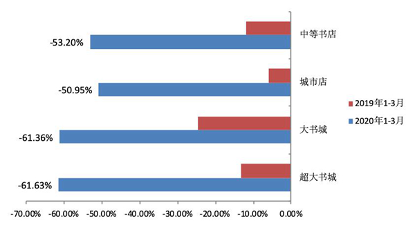 不同規模實體書店同比增長率對比