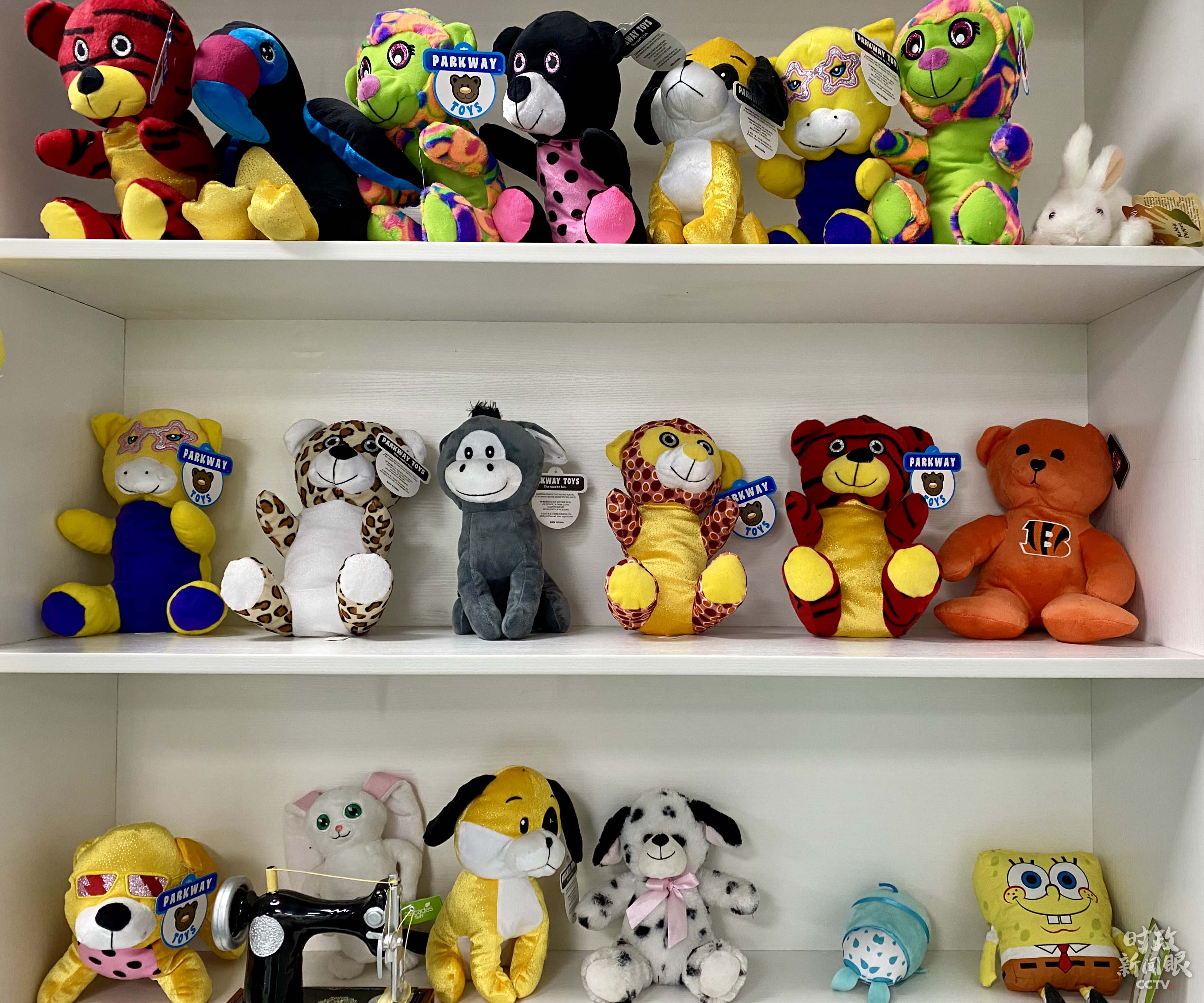 △这是开办在社区内的工艺制品厂,工人正在加工毛绒玩具。(总台央视记者李辉拍摄)