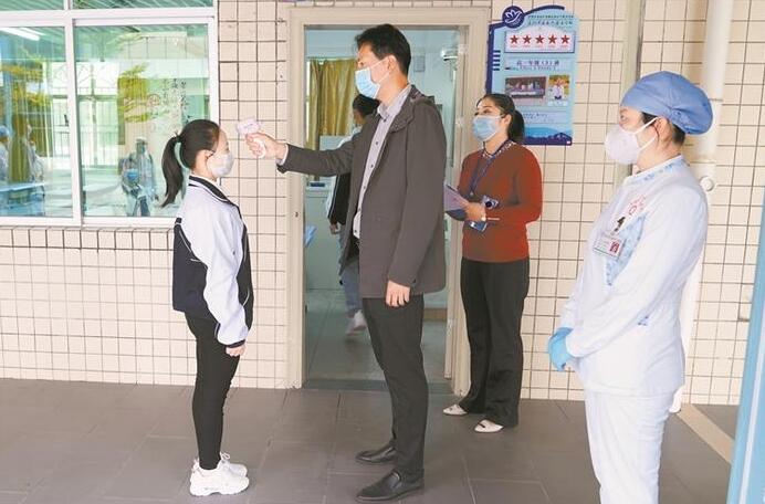 深圳市教育局副局長王水發介紹,深圳已構築了返校安全「十道防線」,每日要做好晨檢、午檢、晚檢,在防疫物資方面,要保障準備到位,嚴格做到「物資保障不到位不開學,防控條件不具備不開學」。(記者林麗青)