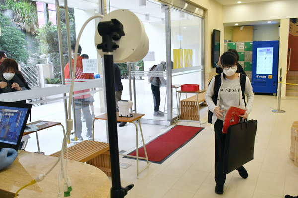 在何文田其中一個試場,有3名考生由於體溫過高,休息後再進行耳探,有考生經過3次量體溫後才低於攝氏38度,最終獲准進入試場。