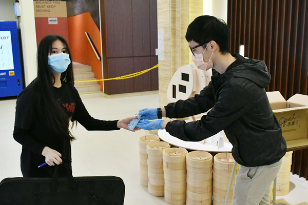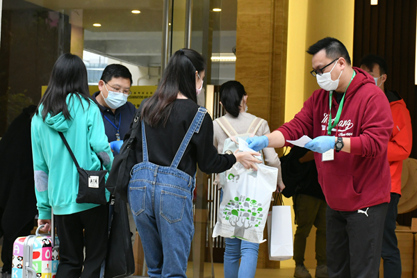 校門外有大學生自發舉牌為考生打氣,又派發寫有勉勵字句的便利貼及有需要的考生送贈口罩。