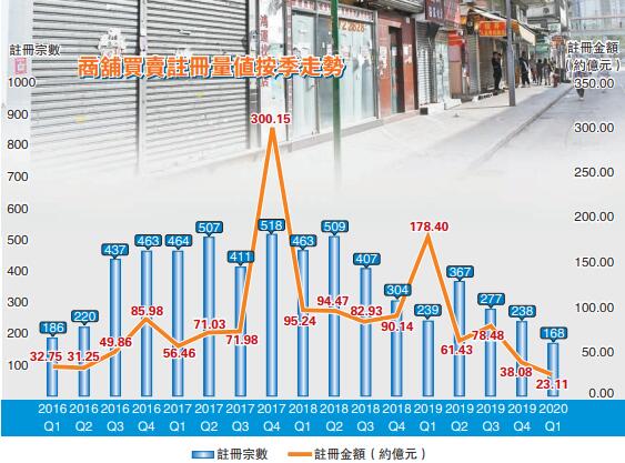 事實上,本港經濟自去年6月起一直受修例風波拖累。美聯旺舖董事盧展豪表示,今年初爆發的新冠肺炎疫情又令訪港旅客大減,零售及飲食業生意進一步受重創。商舖市場受挫,交投氣氛薄弱,致首季註冊宗數創歷史新低。