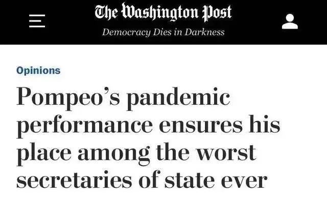正如《华盛顿邮报》所批评的,蓬佩奥在新冠肺炎的问题上如同“隐形人”,是“美国历史上最差国务卿之一”。在美国国内防疫物资紧张之时,美国人民也几乎看不到蓬佩奥在协调国际抗疫物资供应方面的努力。
