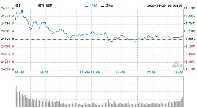 【香港商报网讯】恒指全天高位回落,早盘高开0.85%报24786点,开盘后曾短时上行,最高涨近280点,高见24855点,创3月11日以来新高。随后恒指持续震荡回落,午后最低曾倒跌近30点,低见24549点。
