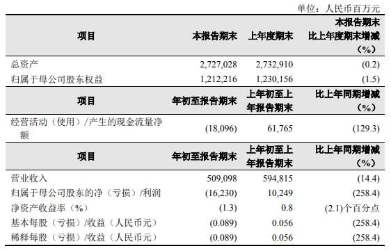 【香港商报网讯】中国石油披露一季报,按照国际财务报告准则,本集团实现营业收入人民币5090.98亿元,同比下降14.4%;受营业收入减少以及油价大幅下降导致库存跌价损失影响,归属于母公司股东的净亏损人民币162.30亿元, 比上年同期的净利润人民币102.49亿元减少利润人民币264.79亿元。