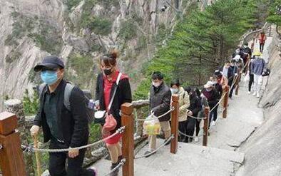2020年清明节期间,游客在黄山玉屏景区游览。图:中新网