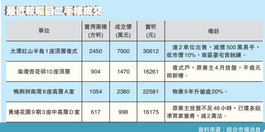 市場亦不乏業主劈價微利離場。何文田天鑄5座低層B室,實用1300平方呎,原叫價3484平方呎,最新劈價至2720萬元售出,累減764萬元或22%,實呎20923元。原業主2016年2505.9萬元購入,帳面獲利214.1萬元,賺幅約8.5%。市場消息指,原業主購入該物業時支付了15%買家印花稅。