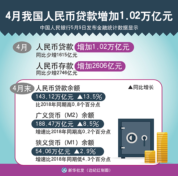 數據顯示,4月份,人民幣貸款增加1.7萬億元,同比增加6818億元。分部門看,住戶部門貸款增加6669億元,其中,短期貸款增加2280億元,中長期貸款增加4389億元;企(事)業單位貸款增加9563億元,其中,短期貸款減少62億元,中長期貸款增加5547億元,票據融資增加3910億元。