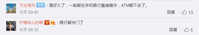你多久没去银行网点办业务了?新浪微博网友表示,“一般都在手机银行直接操作,ATM都不去了。”“银行都关门了。”