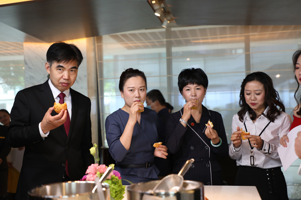 參與直播帶貨的黨的十九大代表和全國人大代表們品償廣東美食。