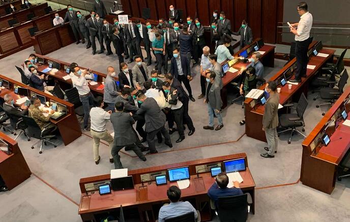 10時58分左右,反對派議員拉起黑布,輪番衝擊主席台,與保安員發生肢體衝突,場面混亂。陳健波警告反對派議員停止衝擊,否則有機會干犯《權力及特權條例》,可被判監12年。他多次發出警告不果,先後驅逐陳淑莊、許智峯、朱凱廸和尹兆堅離開會議室。