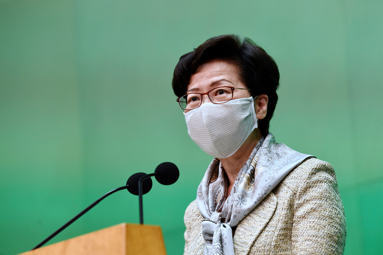 林鄭月娥表示,落實「保就業」計劃刻不容緩。中新社
