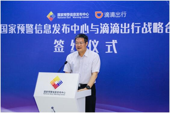 中国气象局副局长余勇,交通运输部应急办二级巡视员周旻,国家预警信息发布中心主任孙健,滴滴出行高级副总裁庞基敏,滴滴出行副总裁曲越川等出席会议并见证了签约仪式。国家预警信息发布中心副主任朱小祥、滴滴出行技术副总裁赖春波代表双方签订协议。