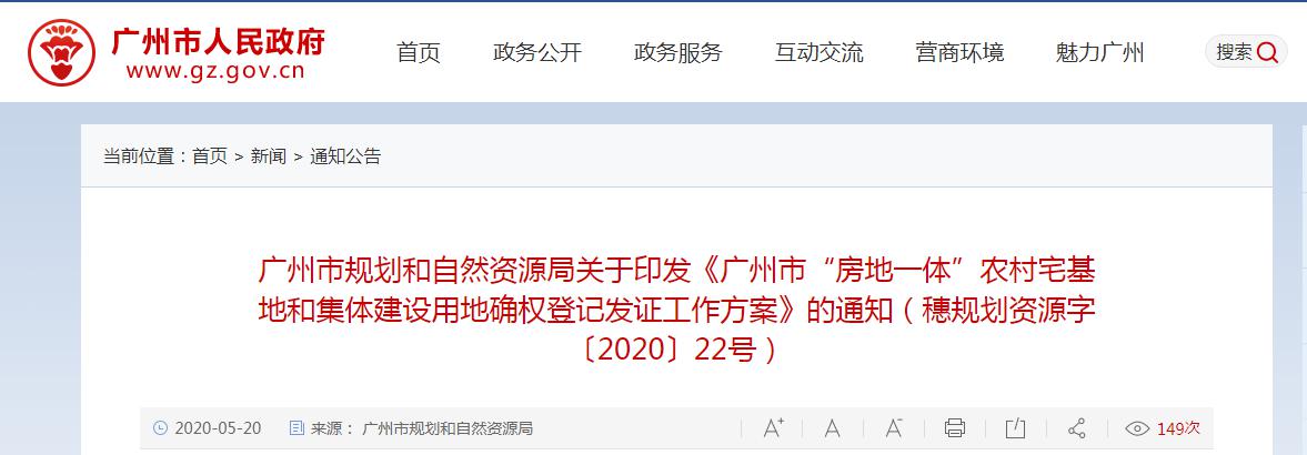 據廣州市人民政府網站5月20日消息,日前,廣州市規劃和自然資源局印發《廣州市「房地一體」農村宅基地和集體建設用地確權登記發證工作方案》(以下簡稱《工作方案》),確保於2020年年底前完成全省「房地一體」農村不動產登記發證工作。