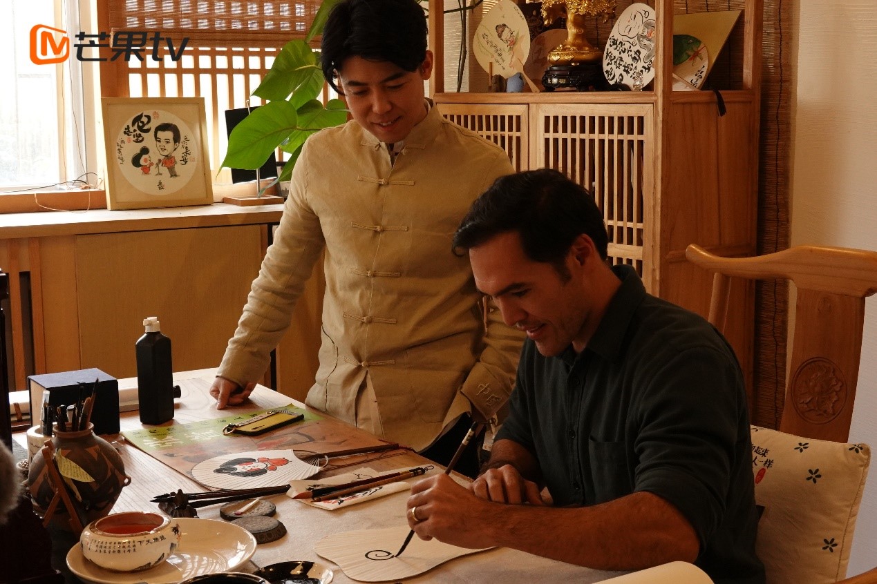 外國嘉賓安東尼·莫爾斯與水墨動漫藝術家喬喬學習水墨繪畫
