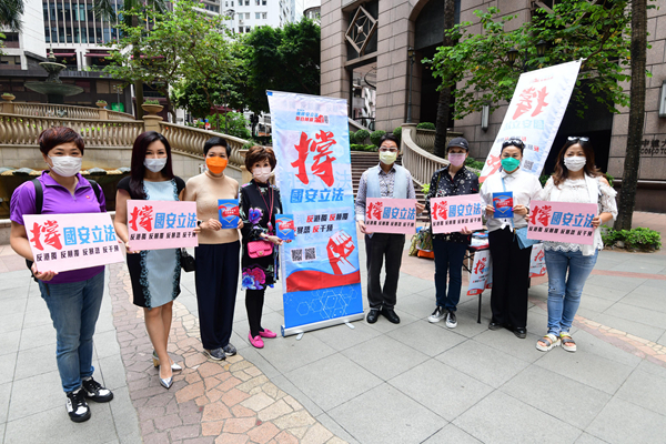 當日,與愛同行義工團響應「香港各界撐國安立法聯合陣線」號召,於上環新紀元廣場發起「撐國安立法」街站簽名聯署活動,不少市民經過時都走上前簽名。參與聯署的香港市民梁先生稱,過去一年香港實在太亂,反對派鼓吹「攬炒」,亂港分子興風作浪,中央制定涉港國安法是維護每一個香港市民的根本利益。