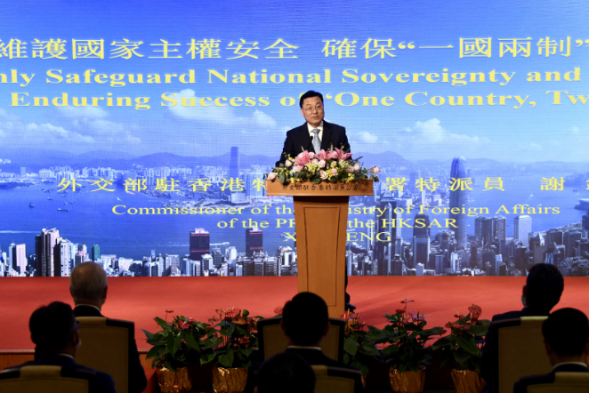 【香港商報网訊】中新社報道:中國外交部駐香港特別行政區特派員公署(外交部駐港公署)特派員謝鋒25日就涉港國安立法向外國駐港領團、商會、媒體和駐港國際組織代表吹風並現場回答提問。謝鋒強調,中央政府維護國家安全有權有責,合理合法,涉港國安立法天經地義、刻不容緩,有助於確保「一國兩制」行穩致遠,國際社會應該安心放心,公正看待中國全國人大決定。