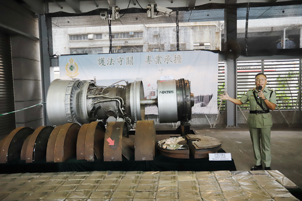 【香港商報网訊】記者區天海報道:海關首次破獲以飛機引擎販運毒品案,海關人員上周根據風險評估透過X光機掃描一個從南美洲厄瓜多爾抵港、報稱運載飛機引擎的貨櫃,並由政府飛行服務隊協助下,成功將引擎拆除,在引擎燃燒室內檢獲約217公斤懷疑可卡因,全部用特製金屬容器盛載,估計市值約2.46億元,是自2012年以來,海關破獲最大宗的海路販運可卡因案件。