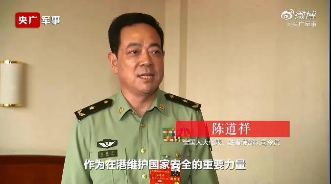 全国人大代表、驻香港部队司令员陈道祥昨日表示,中国人民解放军驻香港部队坚决拥护全国人大涉港决定,驻军官兵有决心、有信心、有能力维护国家主权、安全和发展利益,维护香港的长期繁荣稳定。