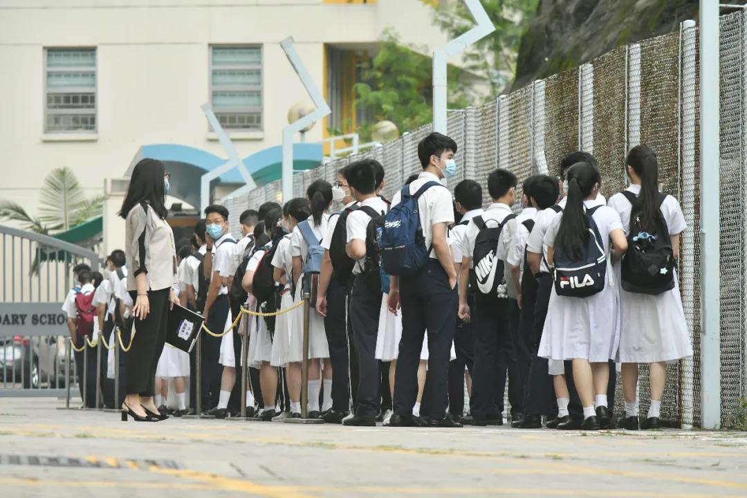 香港中三至中五学生今日先行复课。根据教育局的指引,校园内所有人要戴口罩、学生离家回校及到达学校时要量体温,学生暂时只改返半日学;学生在课室要以「面对背」方式单行排坐,教师要以单向方式授课等。