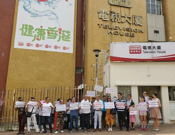 「保卫香港运动」昨日到美国驻港澳总领事馆示威,抗议美国政府对中国政府按计划落实香港国安法一事指手画脚,强调美国本身涉及国家安全的法例最多最严,抗议美国持双重标准抹黑「香港国安法」。