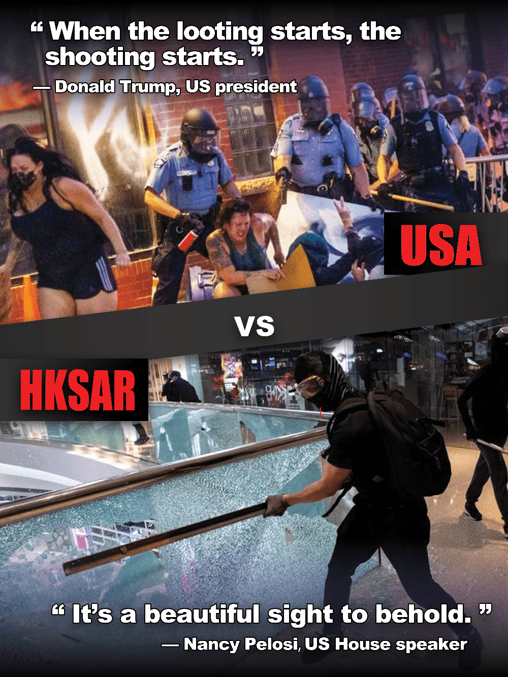 令人匪夷所思的是,針對此前香港出現的暴力事件,一些美國政客居然稱之為「美麗的風景線」。如今,是否可將這樣的言辭原盤奉還給美國政客?