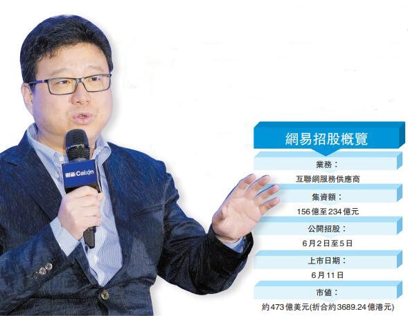 【香港商報網訊】記者鄺偉軒報道:繼阿里巴巴(9988)之後,再有中概股來港作第二上市。據悉,內地互聯網龍頭企業網易,已通過港交所(388)上市聆訊,市場預料將於下周二(6月2日)起開始公開招股,6月11日掛牌。網易在招股文件中披露,考慮在本港上巿後3年之內,分拆遊戲以外的業務作獨立上巿。