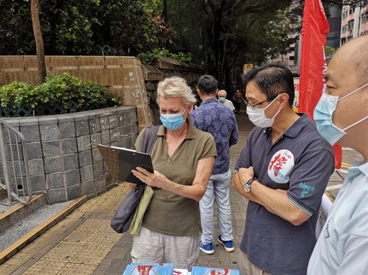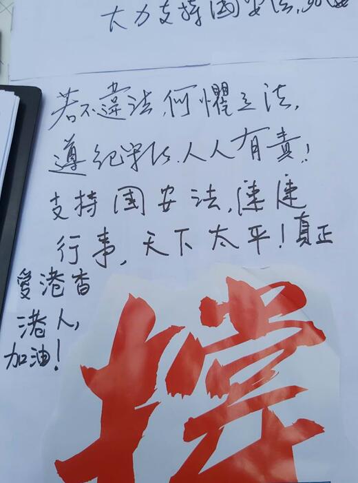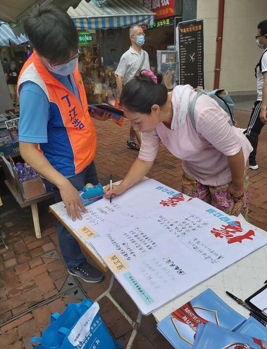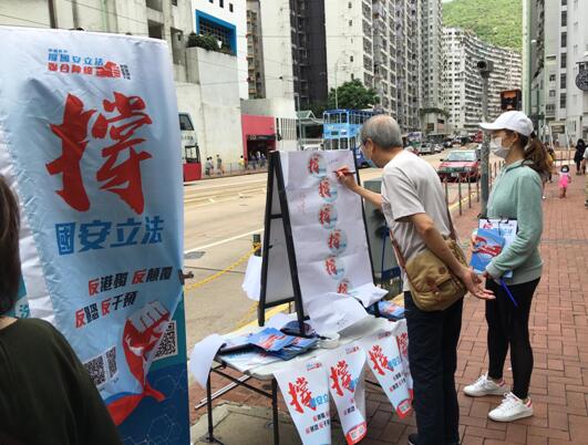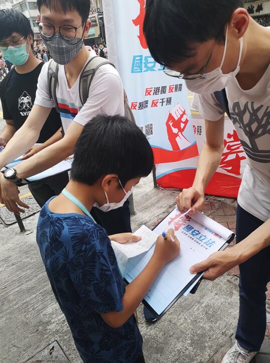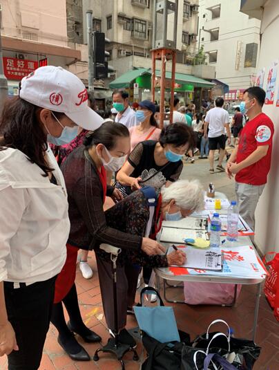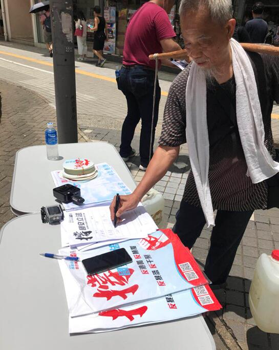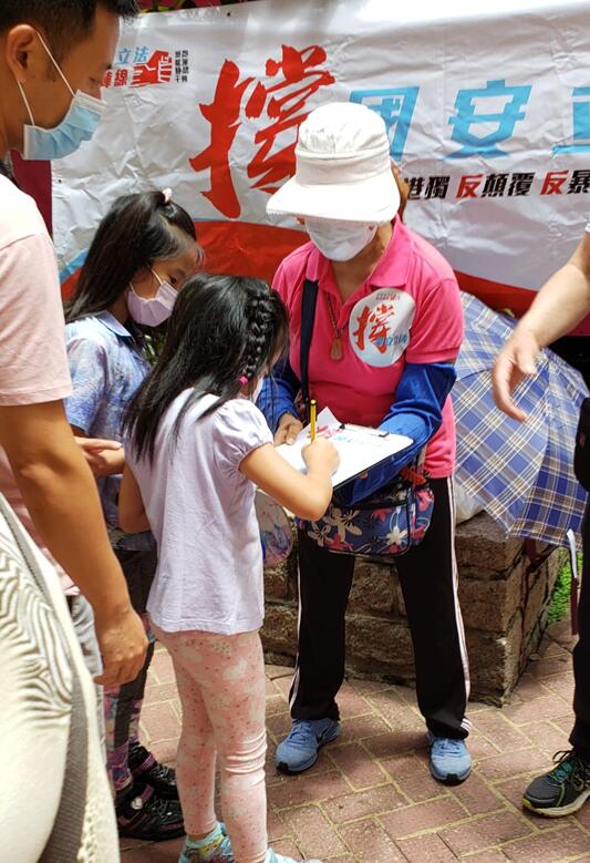 支持港区国安立法,渴望香港重回安宁的市民赶在签名结束前最后一日认真签名,101岁的婆婆在家人搀扶下,亲身到红磡街站签名支持。