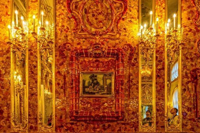 琥珀屋最初由普鲁士帝国于1701年建造,坐落于柏林的夏洛特堡宫。伴随着俄国与普鲁士帝国的结盟,普鲁士帝国于1716年将琥珀屋赠予俄国的彼得大帝。